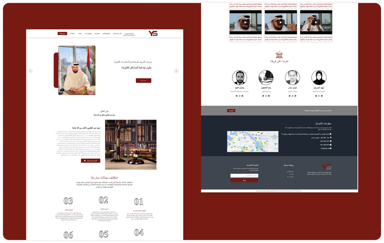 شركة يوسف الشريف وشركاؤه، بقيادة رئيس مجلس الإدارة الدكتور يوسف الشريف، تضم فريقاً من المحترفين القانونيين ذوي خبرة تتجاوز 25 عامآً في مجال القانون. يهدف التعاون مع فريق تيم اكس تك في تطوير موقعهم الإلكتروني إلى عكس سمعتهم المرموقة وتعزيز تواجدهم على الإنترنت وفتح قنوات التواصل مع العملاء. تم تطوير موقع ديناميكي ثنائي اللغة (الإنجليزية والعربية) باستخدام أحدث التقنيات، وذلك لتلبية متطلبات العميل بأفضل الطرق.