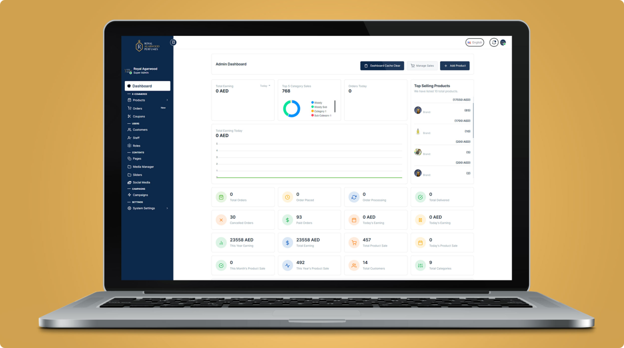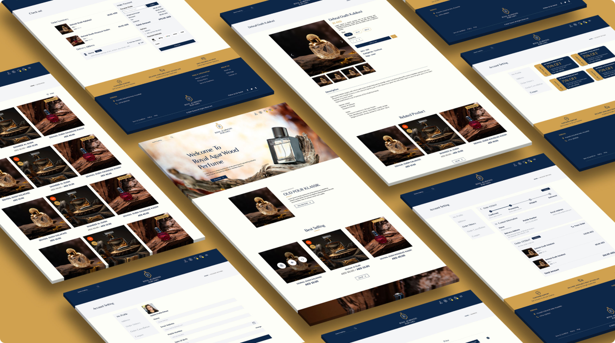 Royal Agarwood Perfumes, a renowned retailer of perfumes and oud, based in the UAE, sought to enhance its online presence and streamline its sales process. To achieve this goal, the company collaborated with our team to develop a sophisticated e-commerce platform. The primary objective of the project was to create a seamless shopping experience, offering a diverse range of perfumes and oud products through a bilingual website available in both English and Arabic.