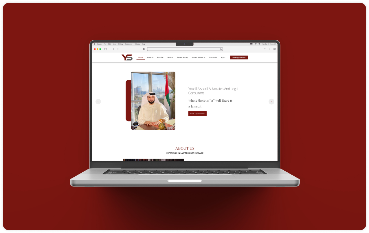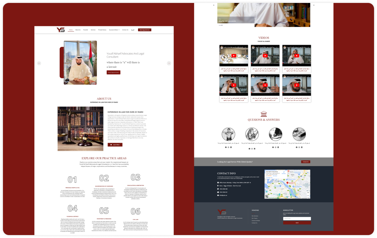We in Teamx Tec conducted thorough research to align the website with Yousif Al-Sharif & Co. vision, taking into consideration their extensive experience in law and their commitment to excellence. Our focus was on their diverse practice areas, which include family law, property law, maritime law, commercial law, sports law, legal opinions, criminal law, labor law, drafting contracts, intellectual property, and private notary services, to ensure that the website caters to the needs of clients seeking legal services in any of these areas.